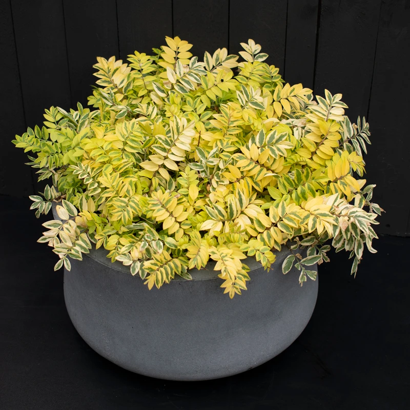 - Golden variegated foliage looks appealing from spring to fall.